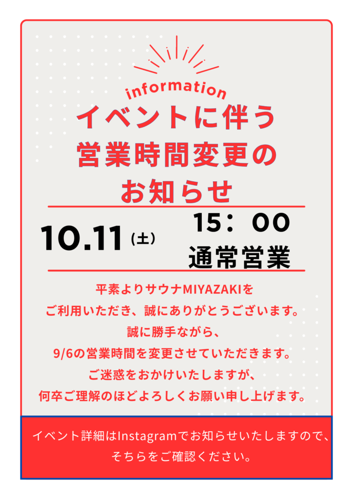 ※諸事情により、 予告なく中止/時間変更する場合がございます。予めご了承ください。